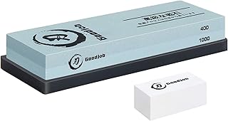 Hochwertiger Messerschärfer von Goodjob, professioneller japanischer Schleifstein, Messerschärfer mit doppelter Körnung 400/1000 Wasserstein, flachendem Stein und rutschfester Gummiunterseite