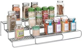 mDesign Gewürzregal ausziehbar – vielseitige Gewürzablage für Ordnung im Küchenschrank oder auf der Küchenablage – voll ausgezogen 2 Gewürzregale nebeneinander – robustes Metall mit Silber-Finish