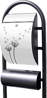 Banjado® Stand Briefkasten in Hammerschlag-Optik in Größe 150x44x14cm mit Motiv Pusteblume 2 - Briefkasten mit Standfuß/Postkasten freistehend als Standbriefkasten mit Zeitungsfach