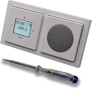 Busch Jäger Unterputz UP Digitalradio 8215 U (8215U) Komplettset, Future Linear Studioweiß 1722-184K, Lautsprecher + Radio + Abdeckungen + 2fach Rahmen – inkl EBROM Phasenprüfer zur Montage der Geräte