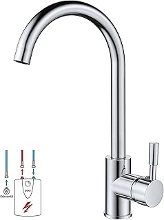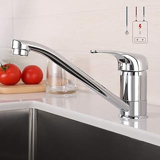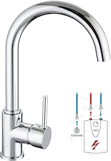 Niederdruck Armatur Küche mit Rundbogenauslauf Küchenarmatur Chrom Wasserhahn Küche für drucklose Untertischgeräte Waschbecken-armatur Spültischarmatur Mischbatterie für Küche