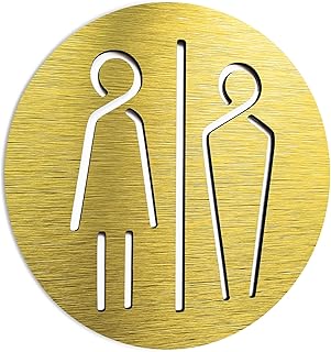 BSYDESIGN Unisex WC-Schilder - Türschild für Toilette - Toilettenschild aus gebürstetem - Gäste wc Aufkleber - Badezimmer deko Abziehbild - selbstklebend & pflegeleicht (Gold Frauen und Männer)