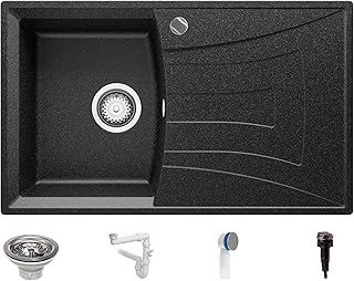 Granitspüle Graphit 77 x 47 cm, Spülbecken + Siphon Automatisch, Küchenspüle ab 45er Unterschrank in 5 Farben mit Siphon und Antibakterielle Varianten, Einbauspüle von Primagran