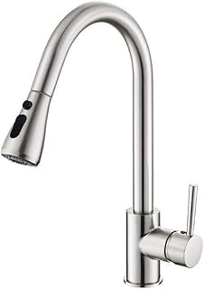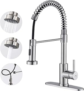 EKRTE Küchenarmatur, gebürstetes Nickel, Küchenarmatur mit Sprüher mit einem Griff, hoher Lichtbogen, ausziehbarer Küchenarmatur, 1 oder 3 Löcher, kommerzielle Küchenarmatur mit Deckplatte