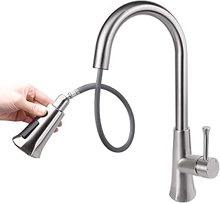 Heable Küchenarmatur mit ausziehbarem Sprühkopf, gebürstetes Nickel, Einhebelmischer mit hohem Lichtbogen, ausziehbarer Küchenarmatur, einstufiger Edelstahl-Küchenarmatur mit UK-Standard-Armaturen