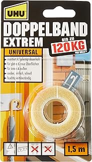 UHU Doppelband Extrem, Extrem hohe Klebekraft von 120 kg/ Rolle, 1,5 m x 19 mm
