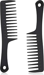 2 Stücke Breiter Zahnkamm Entwirrende Haarbürste Großer Schwarzer Runder Griff Friseur Styling Kamm für Lockiges Haar Nasses oder Langes Haar