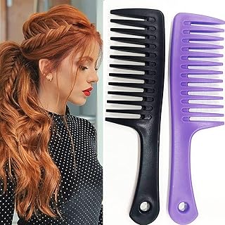 Asdewo Kamm mit breiter Zahnung für lockiges Haar, langes Haar, nasses Haar, dickes Haar, entwirrt, Haarkämme für Frauen, 2 Stück, einschließlich Schwarz und Lila
