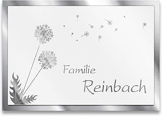 Metzler Edelstahl Namensschild Reinbach in weiß - Wetterfest & Massiv - Rostfrei & UV-Beständig - Individuelle Beschriftung - Größe: 16 x 11 cm