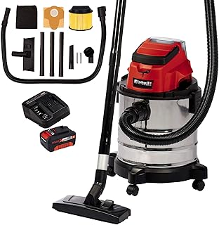 Einhell Akku Nass-Trockensauger TC-VC 18/20 Li S Kit Power X-Change (Li-Ion, 86 Db, 8 kPa, 20L, Edelstahlbehälter, 1, 5 m Saugschlauch, inkl. umfangreichem Zubehör, mit 3,0 Ah Akku und Ladegerät)