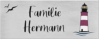 9 Motive, farbige Laserbeschriftung, UV- und witterungsbeständig - Edelstahl Briefkastenschild mit Gravur - Namensschild selbstklebend (3M) - Türschild personalisiert mit Namen - Leuchtturm