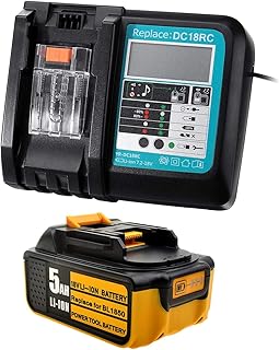 Ersatz 18V DC18RC Ladegerät + 5Ah 18V BL1850 Akku Lithium-Ionen Batterie Kompatibel mit Makita Ladegerät DC18RA DC18RD | Batterie BL1860 BL1840 BL1830 BL1450 BL1430 BL1440 LXT-400