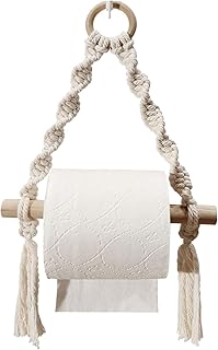 fuguzhu Toilettenpapierhalter ohne Bohren, Boho Klopapierrollenhalter Vintage Seil Handtuchhalter für WC Badezimmer Bad Küche Einfache Wandmontage (02)