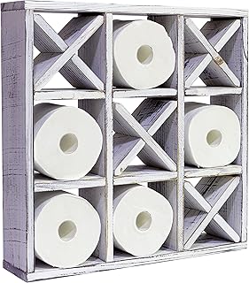 Tic Tac Toe, Toilettenpapierhalter (Bauernhaus-Weiß) | Rustikale Wandmontage, hängend oder freistehend, Aufbewahrungsregal aus Holz | über dem Toilettenpapier-Regal | Badezimmer-Vintage-Dekor