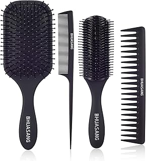 BHUASANG 4-teiliges Paddel-Haarbürste, Entwirrungsbürste und Haarkamm-Set für Männer und Frauen, ideal auf nassem oder trockenem Haar, kein Verknoten mehr, dünnes, lockiges und natürliches Haar