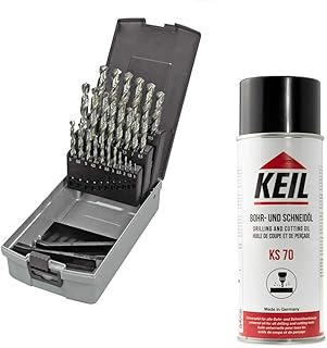 KEIL 302 501 113 Metallbohrersortiment HSS DIN 338 geschliffen, Split Point, 25-teilig Ø 1,0-13,0 mm um 0,5 mm steigend, in RoseBox plus Keil KS70 Bohr- und Schneidöl, 400ml